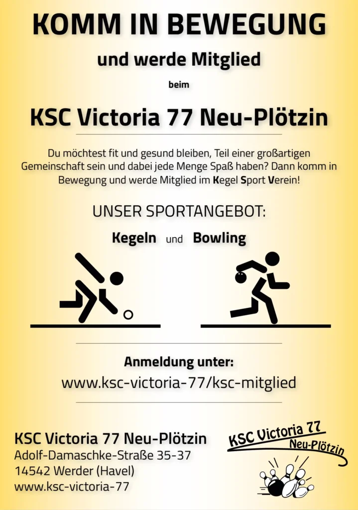 Wir freuen uns auf dich – beim KSC Victoria 77 Neu Plötzin e.V. heißt es: Gemeinsam rollen wir besser!