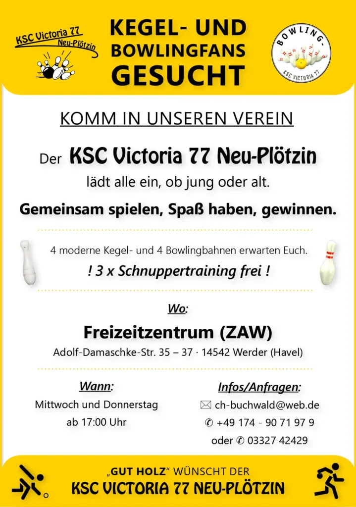 dem Kegelsportverein in Werder (Havel)! Seit ???? steht bei uns der Spaß am Sport, die Gemeinschaft und die Leidenschaft fürs Kegeln im Mittelpunkt. Wir sind ein traditionsreicher Verein mit engagierten Mitgliedern aller Altersgruppen – vom ambitionierten Mannschaftsspieler bis zur begeisterten Freizeitkeglerin.